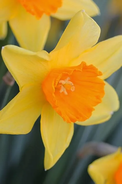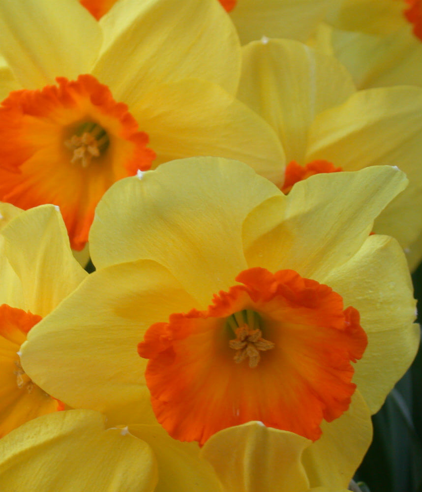 Yellow petals with a contrasting bright orange cup. One flower per stem. Introduced in 1985.