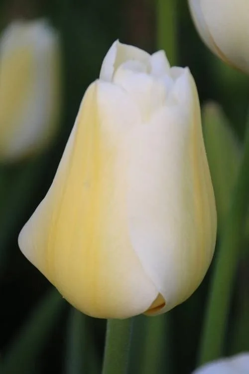 Large oval white flower marbled with cream. One of the last tulips to bloom. Introduced in 1950.