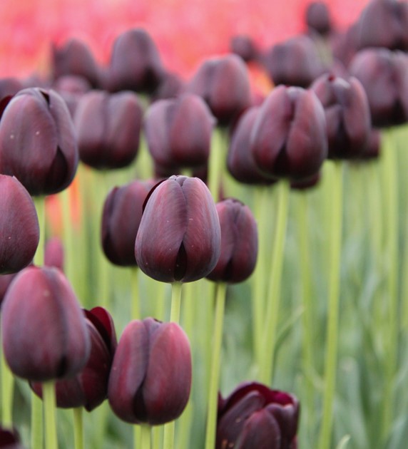 Our darkest tulip- deep velvet maroon. Offers great contrast to yellows, pinks and whites. Introduced in 1940.